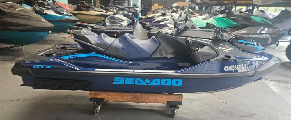 Moto-aquática Sea-Doo GTX 170, ano 2024. Equipada com motor 1.630 ACE de 170 hp, sistema iBR de freio e reverso inteligentes, sistema de som Bluetooth, escada de reembarque e muito mais! Embarcação de único dono, com apenas 39 horas de uso. Venha ver de perto e feche um excelente negócio!