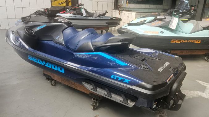 Moto-aquática Sea-Doo GTX 230, ano 2024. Equipada com motor 1.630 ACE de 230 hp, sistema iBR de freio e reverso inteligentes, sistema de som Bluetooth, escada de reembarque e muito mais! Embarcação de único dono, com apenas 55 horas de uso. Venha ver de perto e feche um excelente negócio!