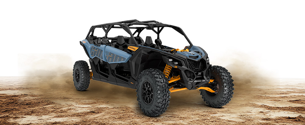 Maverick X3 Max DS Turbo 2026, uma fera com visual agressivo e muita esportividade para quatro passageiros de sorte. Dotada de motorização ACE com 135 HP, Sistema de Aceleração Inteligente (iTC), transmissão CVT com Sistema de Resposta Rápida QRS-X, diferencial dianteiro autoblocante Smart-Lok, Direção Dinâmica Assistida (DPS) de modo triplo, amortecedores Showa HPG Piggyback 2.5, suspensão dianteira e traseira com curso de 20 polegadas e rodas de 14 polegadas em alumínio equipadas com pneus XPS Trac Force 30.