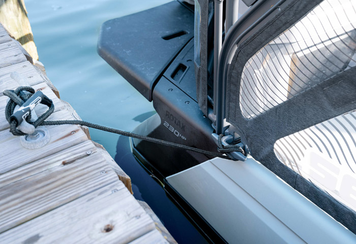 O modelo Sport apresenta detalhes esportivos especiais, como capacidade para até 8 pessoas, amplo deck para descanso com encostos e protetores contra sol, suporte inflável de engate rápido, espelhos retrovisores para acompanhar as manobras de wake, GPS touchscreen Garmin de 7 pol. e muito, muito mais.
