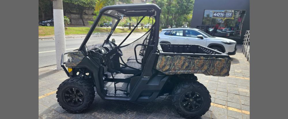 Can-Am Defender HD7, ano 2023. Um UTV de três lugares, focado em trabalho. Equipado com um valente motor Rotax ACE de 650 cc, teto, para-brisa, para-choque dianteiro, rodas de liga-leve, além de muito mais! Unidade de único dono, com apenas 3.860 km de uso! Não perca esta oportunidade!