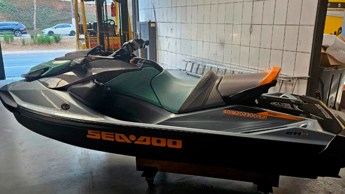 Moto aquática Sea-Doo GTI 170 SE, modelo 2023 com apenas 42 horas de uso! Equipada com motor Rotax 1630 ACE de 170 hp, sistema iBR de freio e reverso inteligente, sistema de som Bluetooth original, escada de reembarque e muito mais! Embarcação de único dono. Venha ver de perto e feche um excelente negócio!