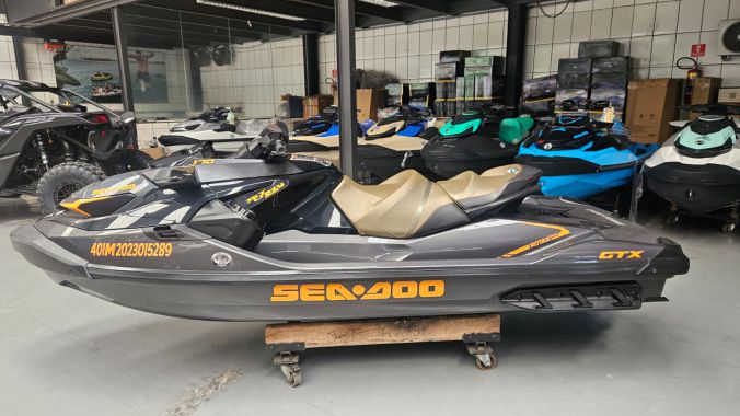 Moto-aquática Sea-Doo GTX 170, ano 2023. Equipada com motor 1.630 ACE de 170 hp, sistema iBR de freio e reverso inteligentes, escada de reembarque e muito mais! Embarcação de único dono, com apenas 103 horas de uso. Venha ver de perto e feche um excelente negócio!