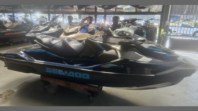 Moto-aquática Sea-Doo GTX 230, ano 2024. Equipada com motor 1.630 ACE de 230 hp, sistema iBR de freio e reverso inteligentes, sistema de som Bluetooth, escada de reembarque e muito mais! Embarcação de único dono, com apenas 55 horas de uso. Venha ver de perto e feche um excelente negócio!