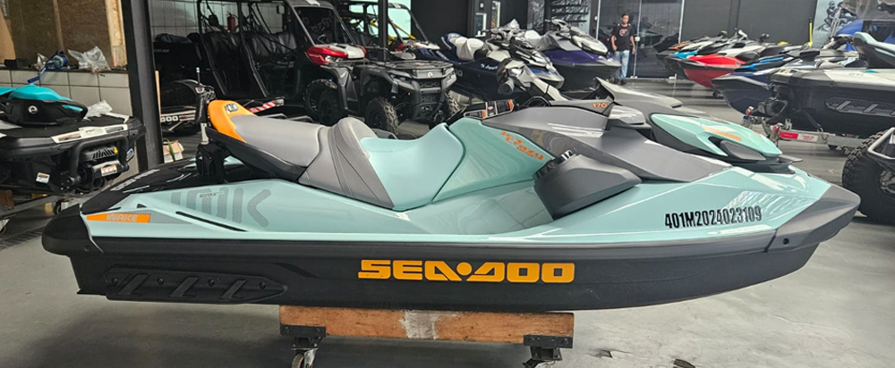 Jetski Sea-Doo Wake Pro 170, ano 2024, com apenas 22 horas de uso! Embarcação de único dono, revisado e com garantia. Equipado com motor 1.630 ACE de 170 hp, sistema iBR (freio, neutro e ré), torre de wake, suporte para prancha de wakeboard, sistema de som Bluetooth, degrau de reembarque e muito mais! Venha ver de perto e feche um excelente negócio!